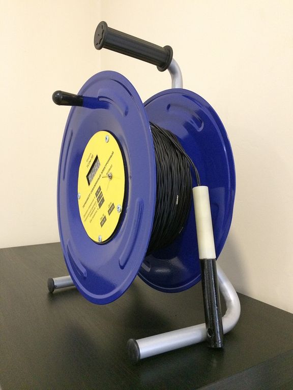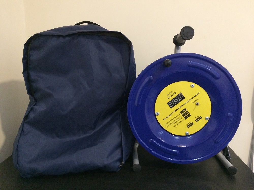 Предназначен для измерерия температуры жидкости в скважине, термометры для скважины ТСЭ-50 ТСЭ-100 ТСЭ-150 ТСЭ-200 отличаются длиной троса, на конце которого размещен датчик с терморезистором для передачи показаний температуры в скважине, на дисплей расположенный на катушке скважинного тросового термометра ТСЭ.